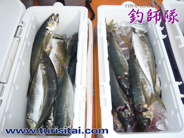 今日も大型のアジが入れ食いでした。雨の中お疲れさまでした。