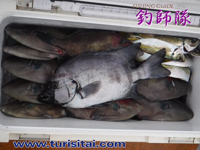 本日トップのお客様カワハギ14枚、石鯛3枚でした。
