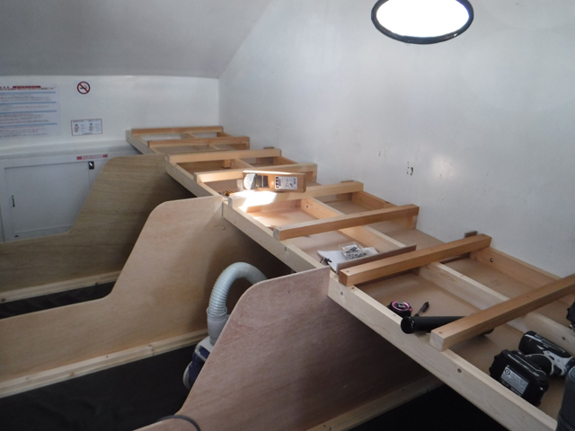 冬季の船室利用再開に向けて感染防止対策工事をしています。