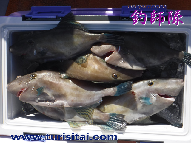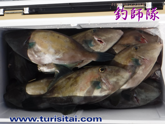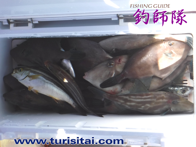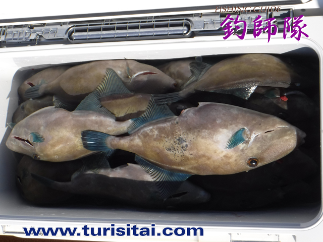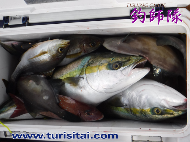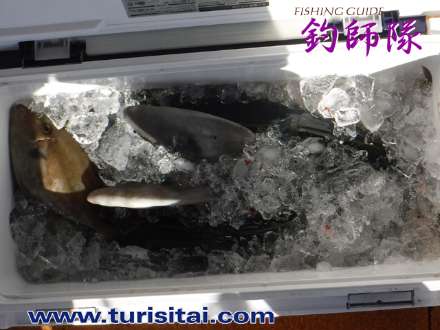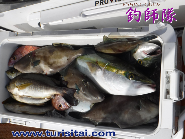 ウマヅラ、イサキ、鯛、ハマチがぎっしり入ってクーラー満タン。