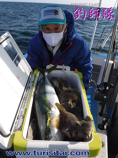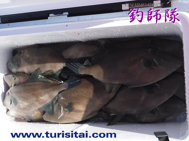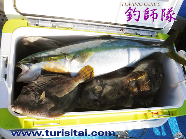 本日のトップ、ウマヅラ23尾にカワハギとハマチを追加して
