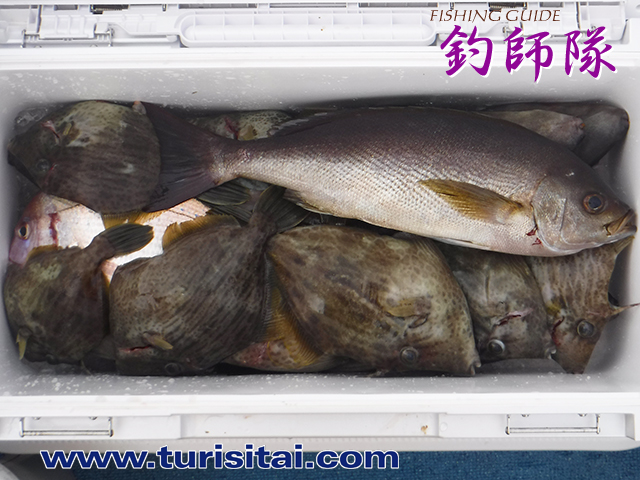 カワハギ入れ食いでした。ウマヅラもよく喰いクーラー満タンの人も。