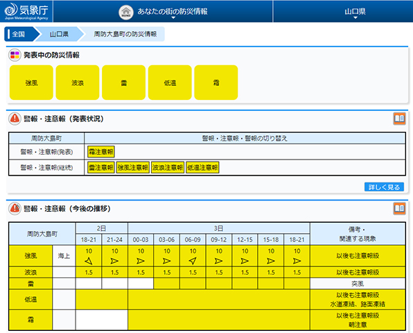 暴風警報、波浪警報、雷注意報