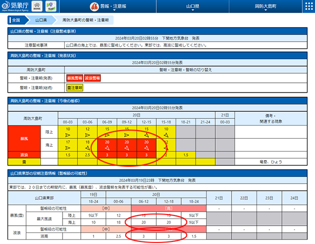 強風波浪注意報
