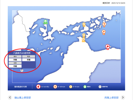 八島沖の風速計は今週も復旧されてませんね。