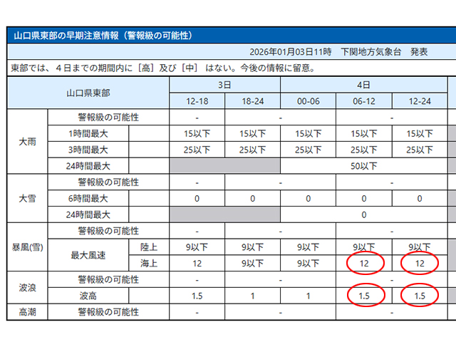 4日は波高1.5m風速12mの荒天予報となりました。