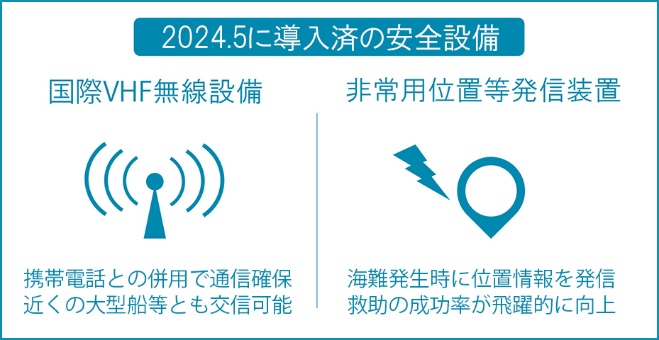 ・国際VHF無線設備により緊急通信ができます。