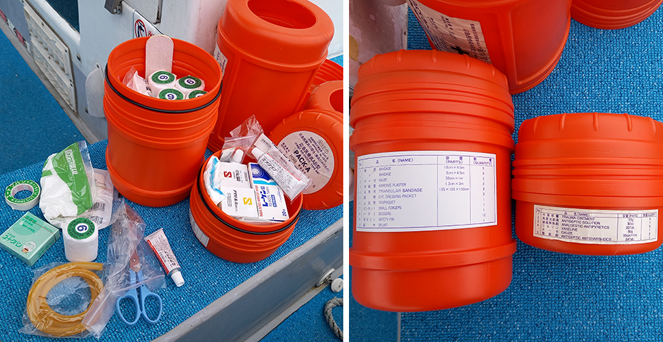 ・応急医療具(国交省型式承認品)を常備しています。