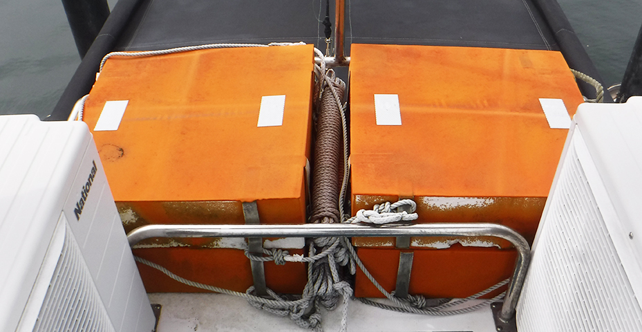 ・救命浮器は、4人用のものを4台常備しています。
