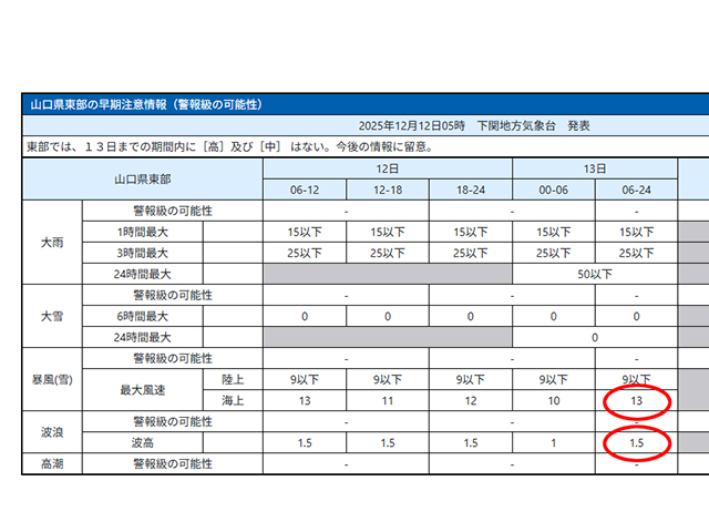 21日は風速14m、波高1.5m予報です。しかも冷たい雨。